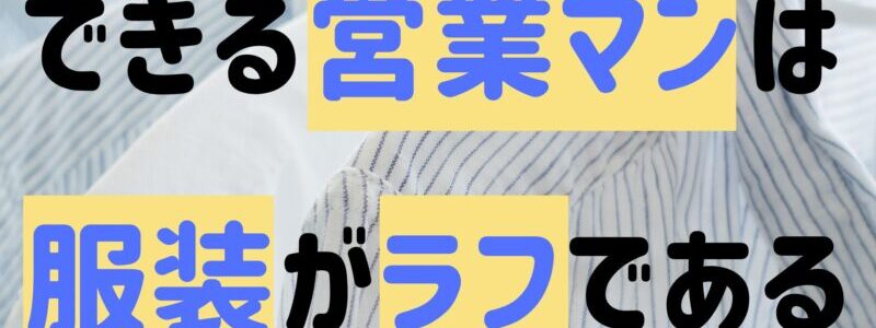 こんにちは!こんばんは!女性営業マンとして日々奮闘しているなっちゃんです! 現代はパーソナルな部分が重んじられる時代です。 昔のようなおじさんスーツだと、古臭くて頭が固い・柔軟さに欠けるイメージを持た … 続きを読む ラフな服装でデキる営業マンを演出する!抜け感のでるポイントはここだ!